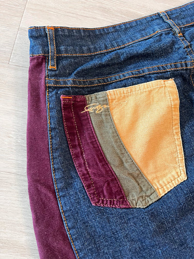 Vintage 90s 2000s Y2K Denim & Corduroy Skirt 14W