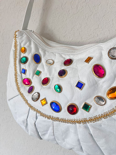 Vintage 80’s Colorful Bejeweled Jeweled Oversized White Gem Bedazzled Studded Crossbody Crossbody Bag