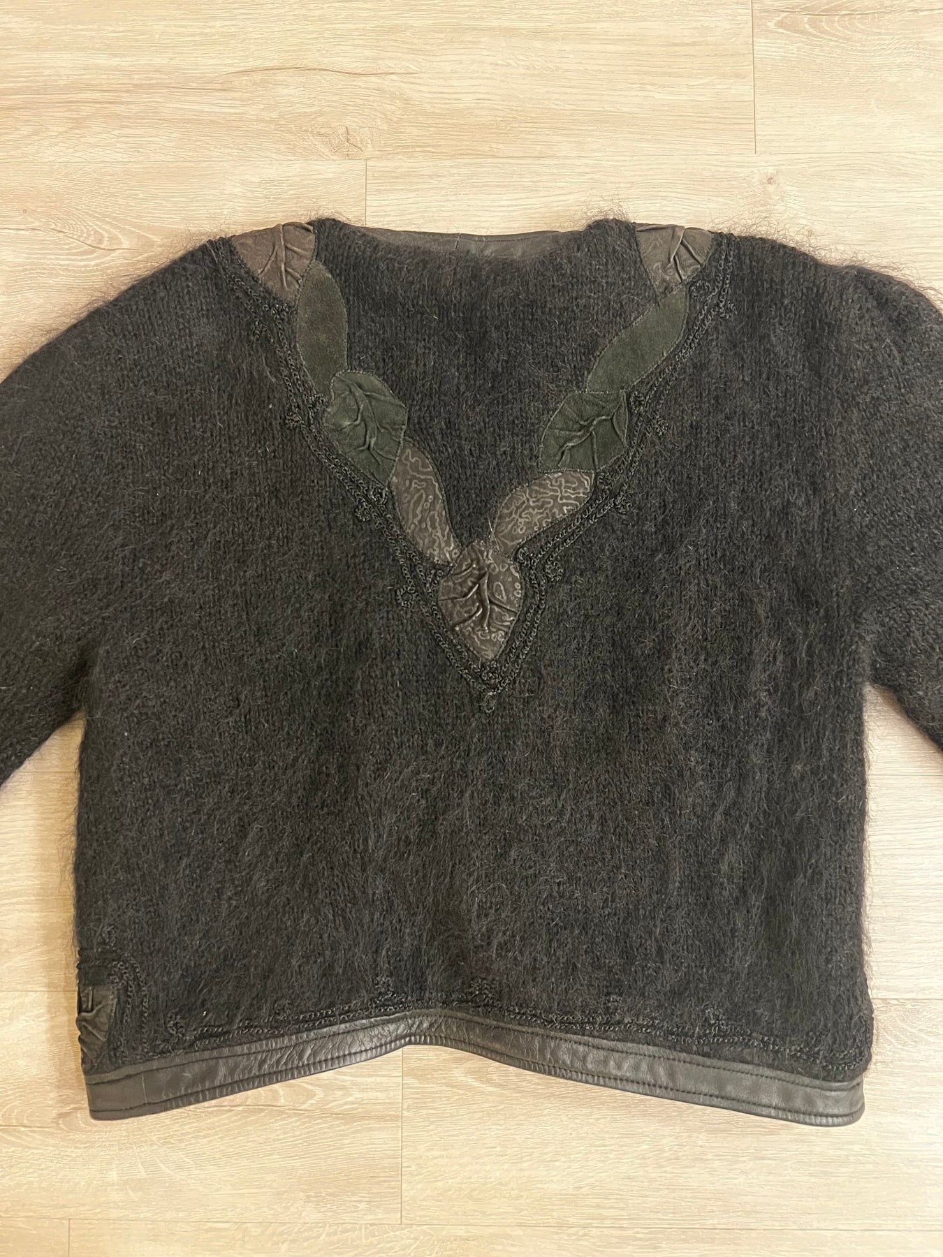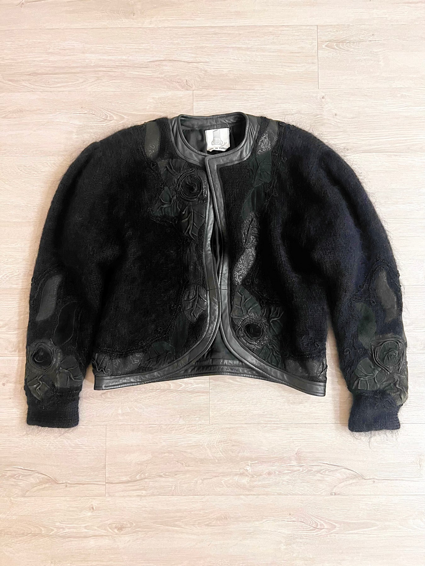 This jacket is so cool and in good condition. Some fading on the leather trim. No enclosure.