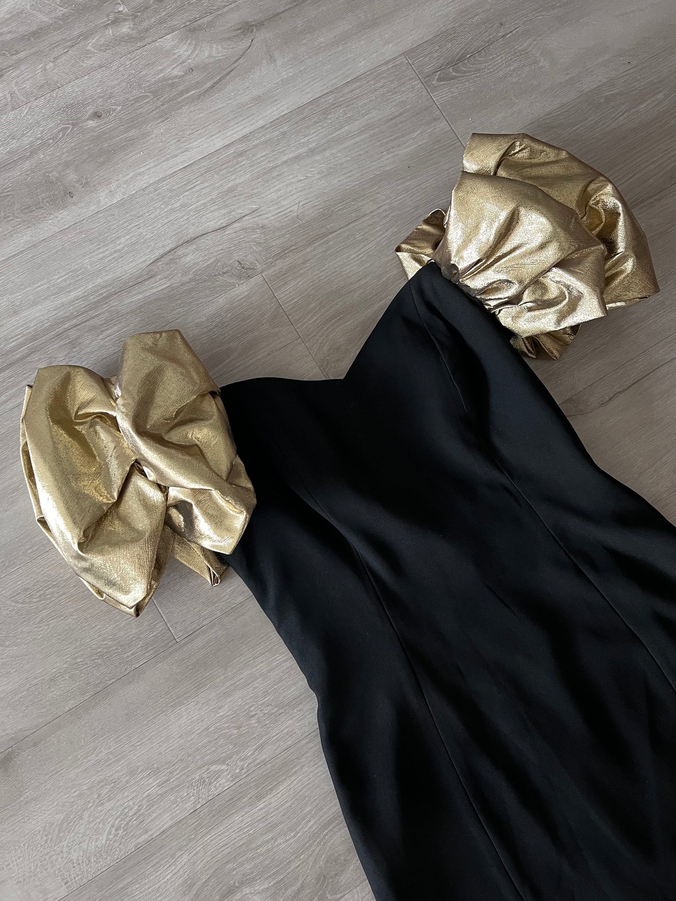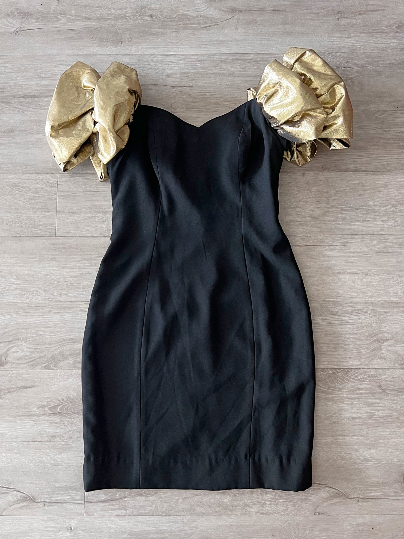 Vintage 80’s Gold & Black Puff Sleeve Saks Fifth Avenue Party Dress
