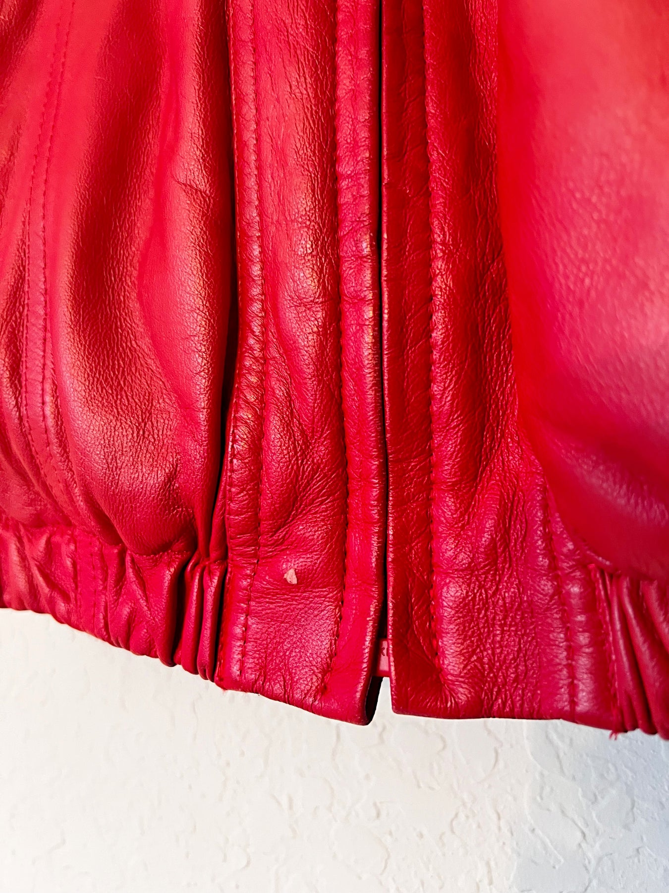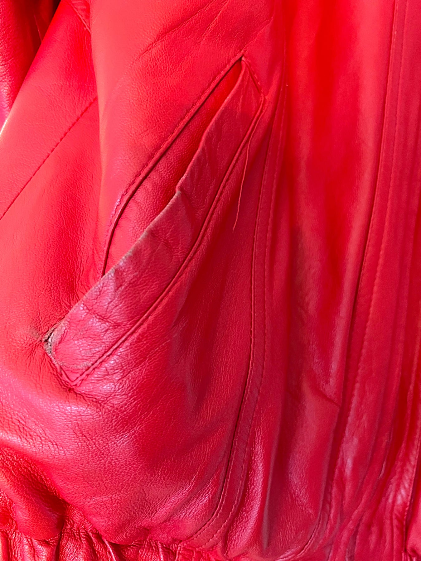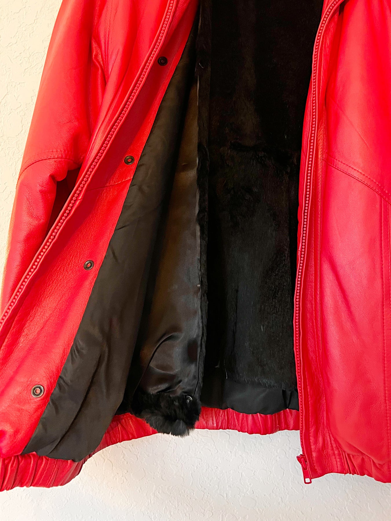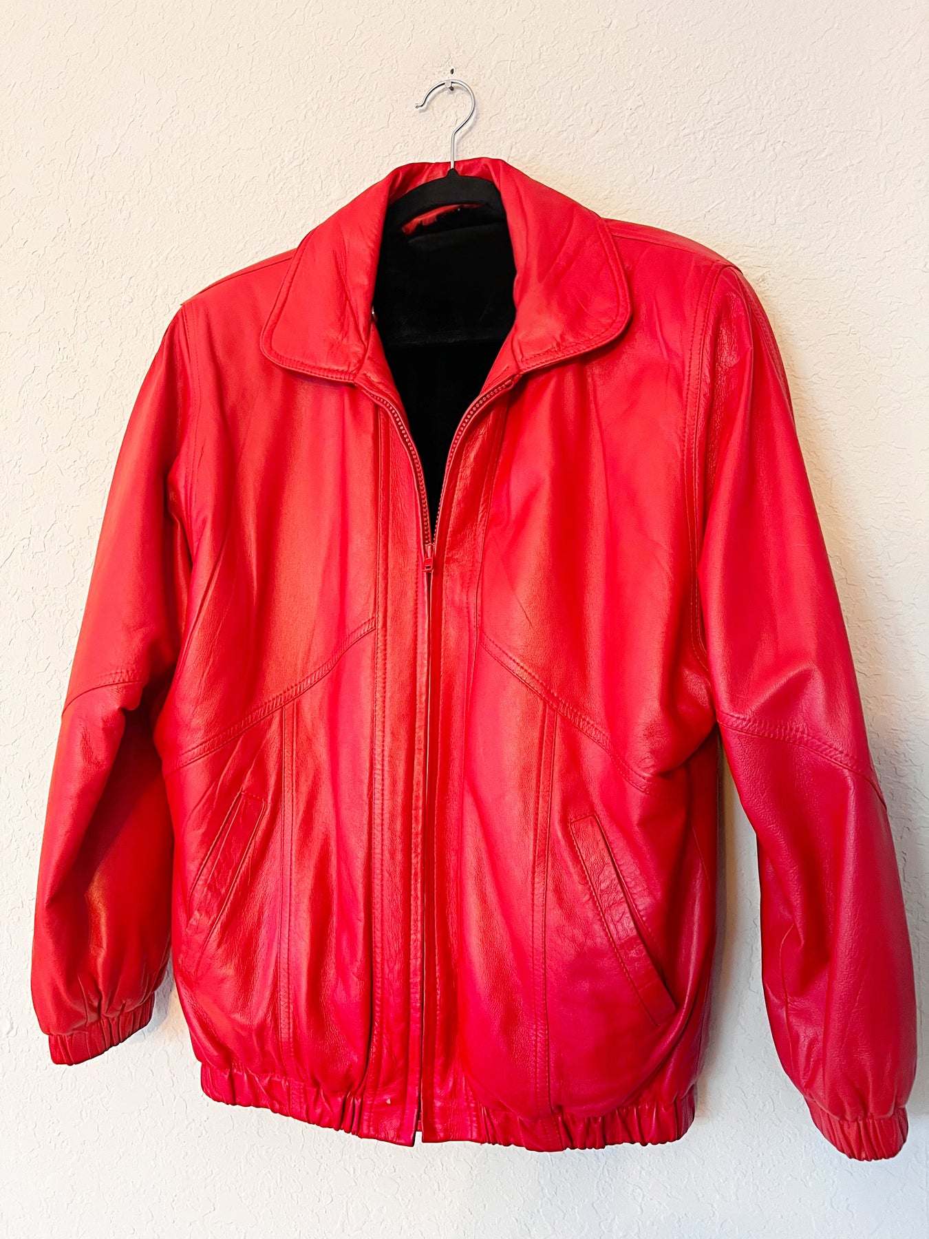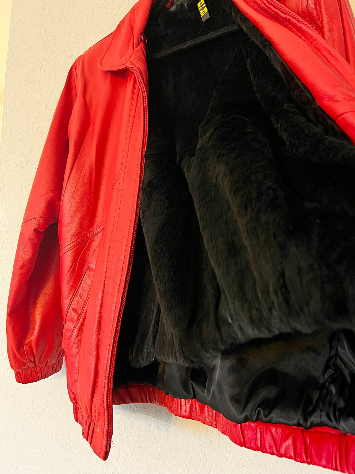 Lovely buttery soft leather jacket with pockets. Zip enclosure and a detachable fur vest on the interior. There is some fading in a few areas on the jacket, but is in otherwise great condition.