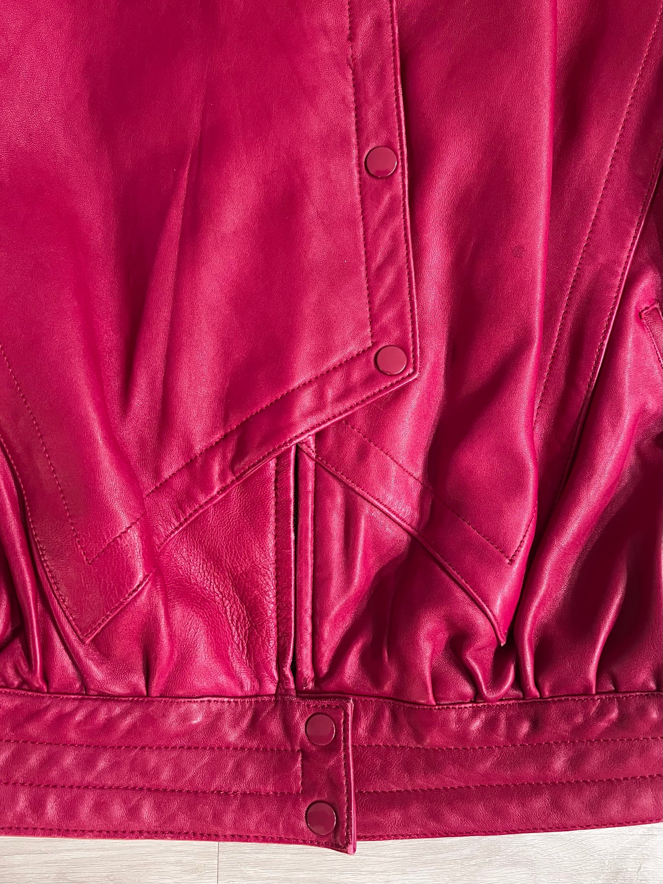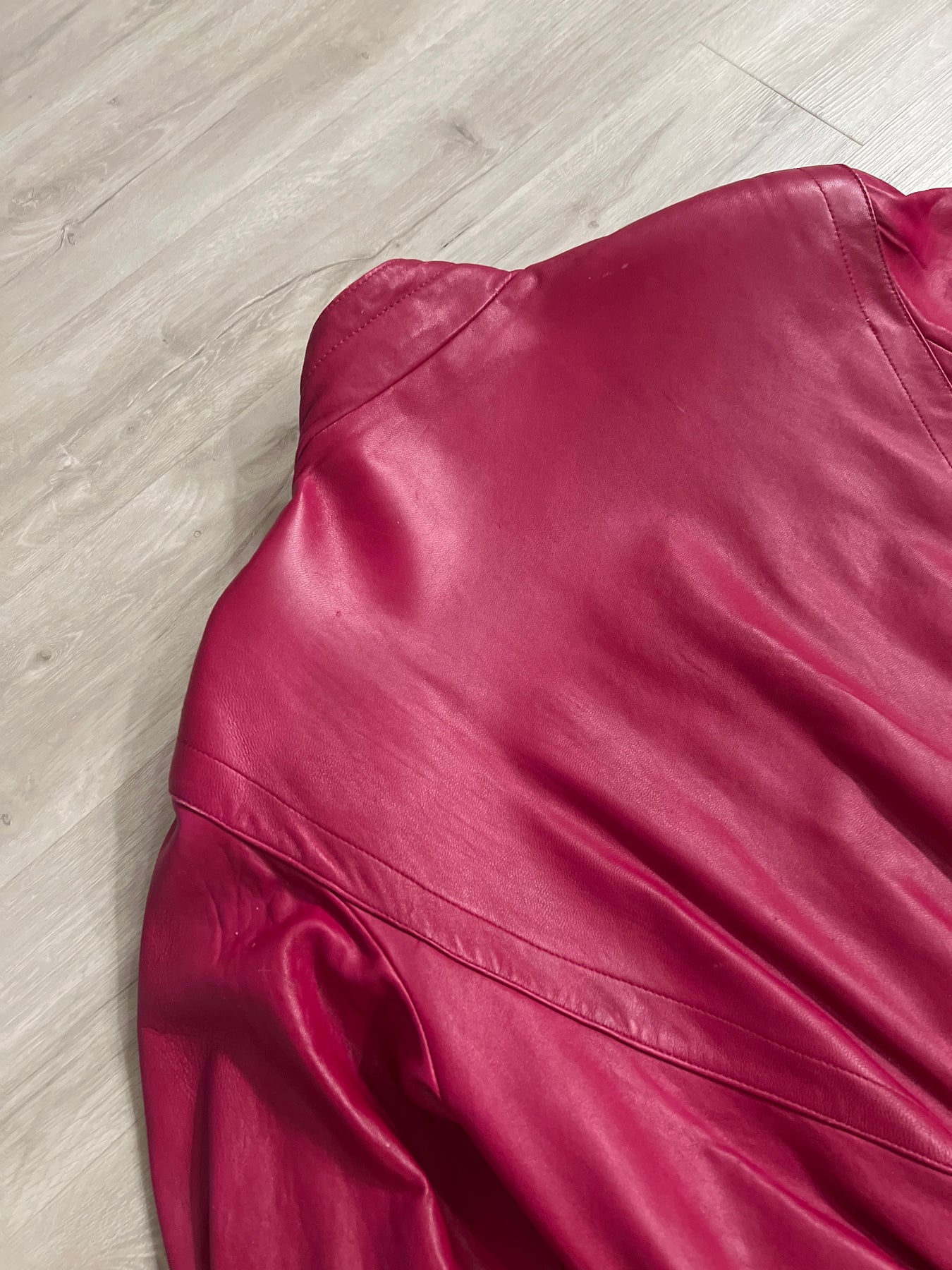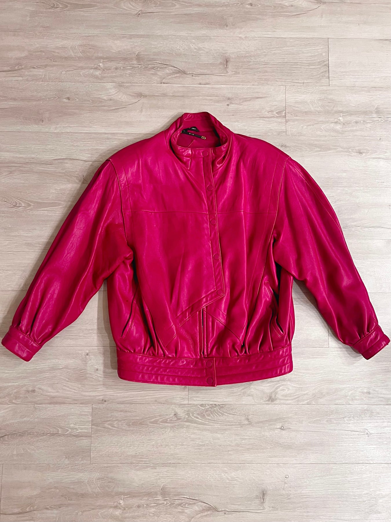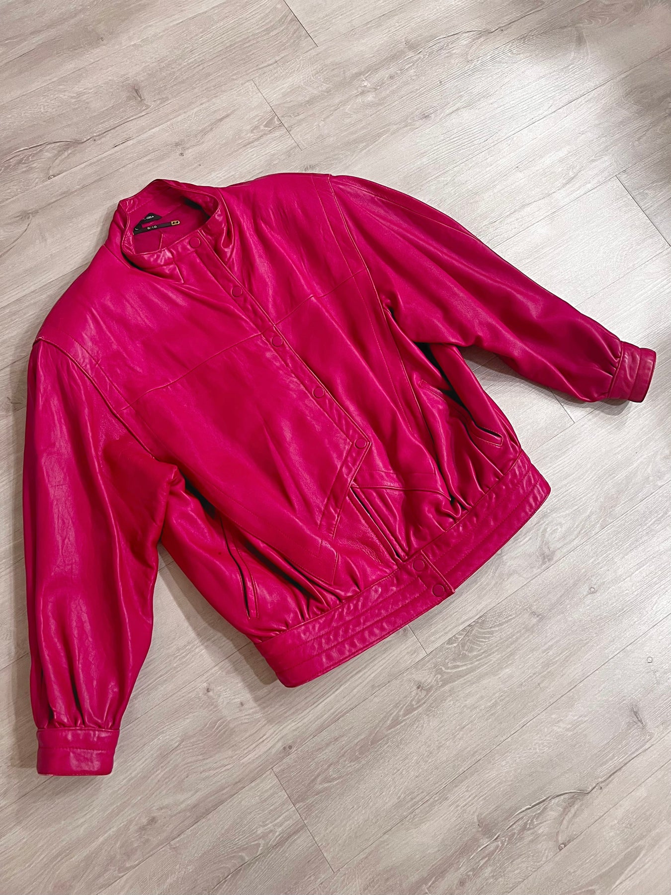 Lovely buttery soft leather jacket. Button enclosure over zipper enclosure. There are some minor scuffs and otherwise in great condition.