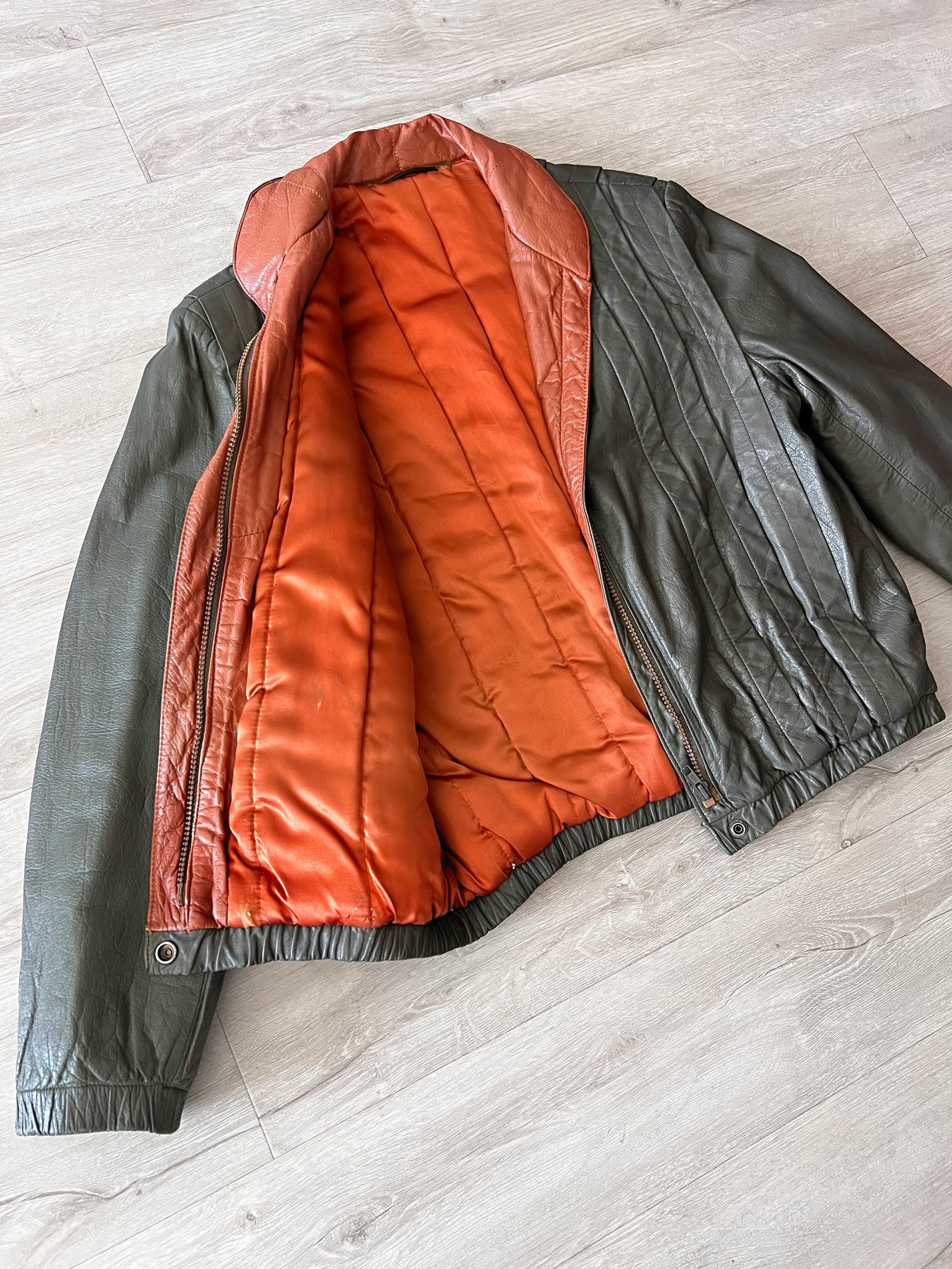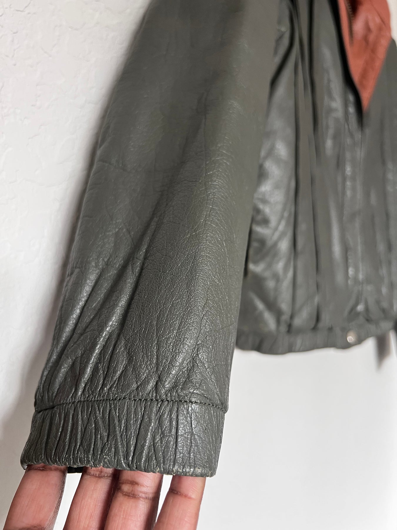 Lovely leather jacket. Olive Green Undertone. Good condition w/ zip enclosure.