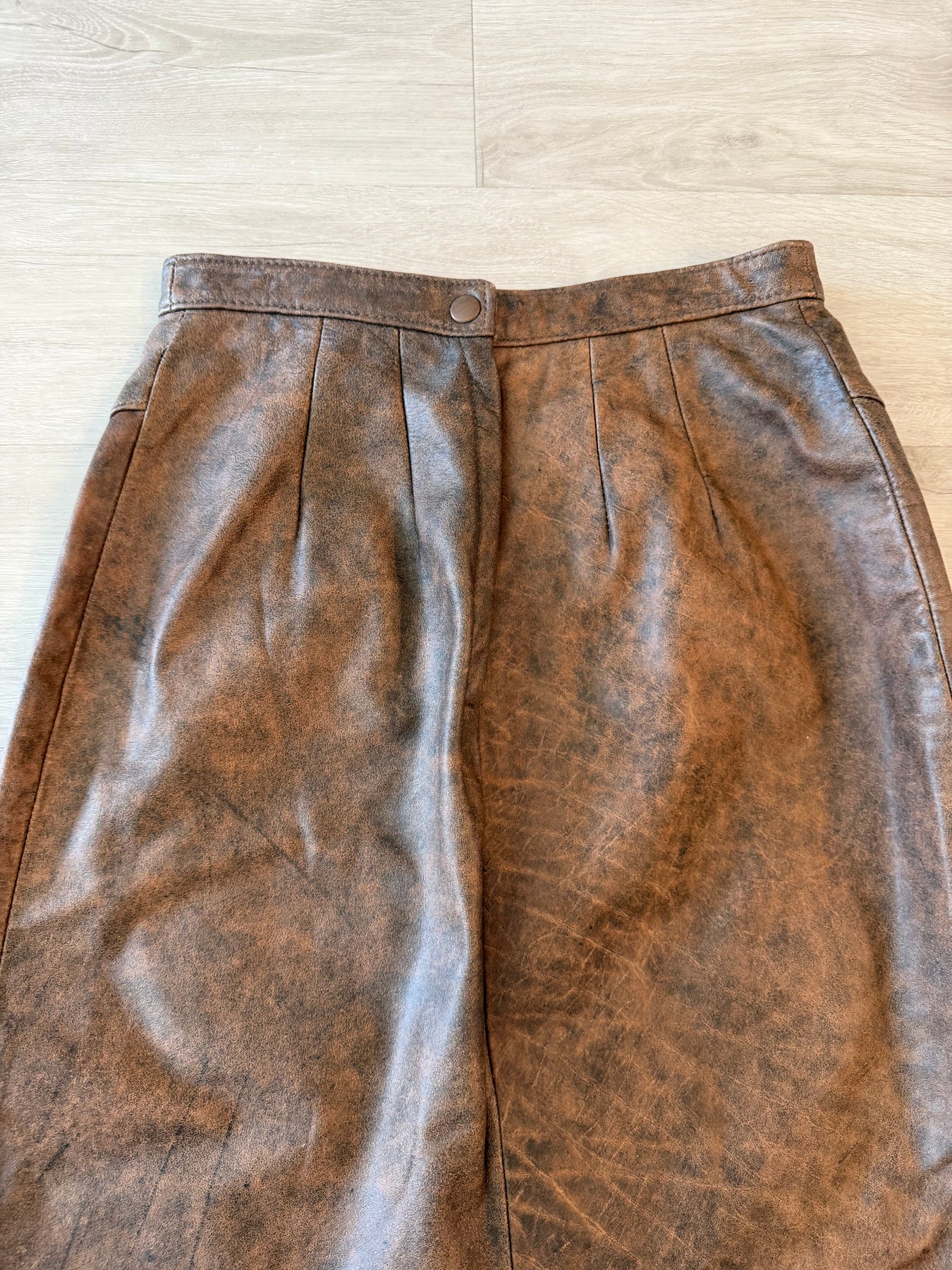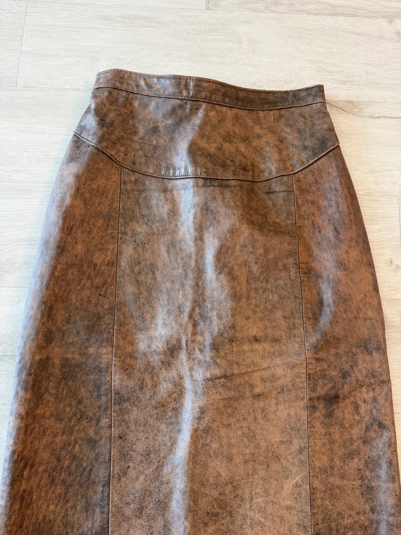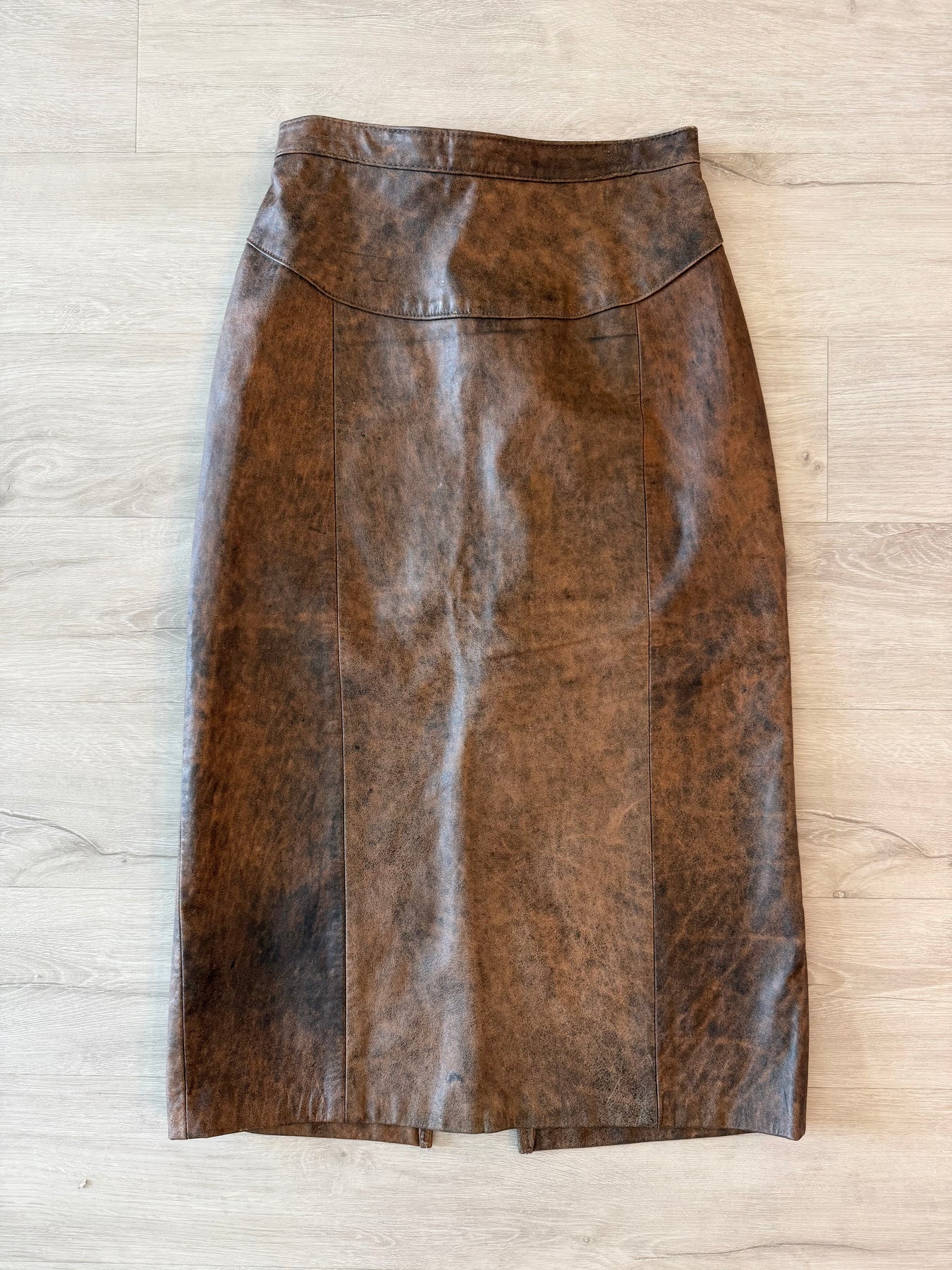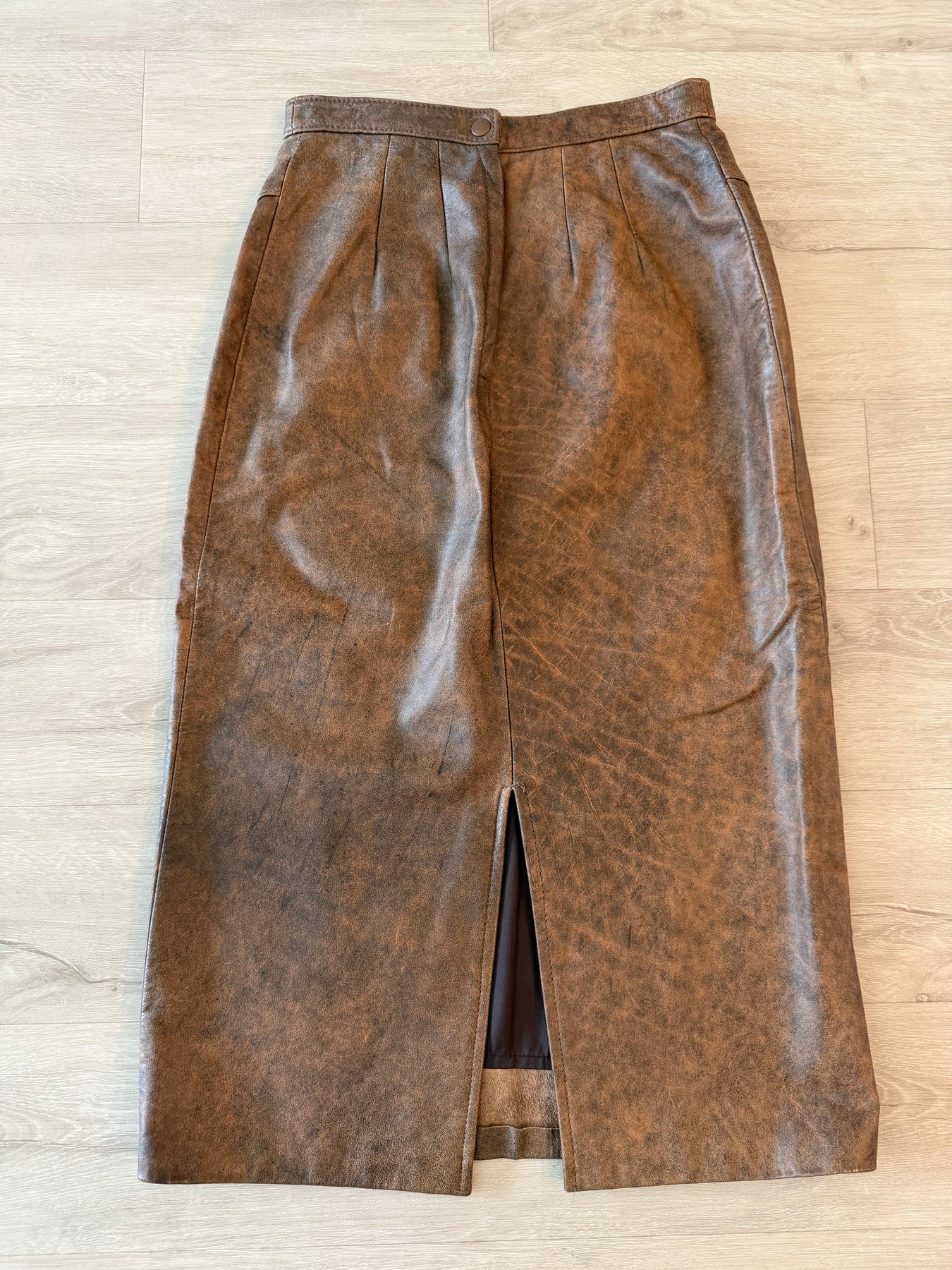 Vintage 80s Brown Leather Pencil Midi Skirt