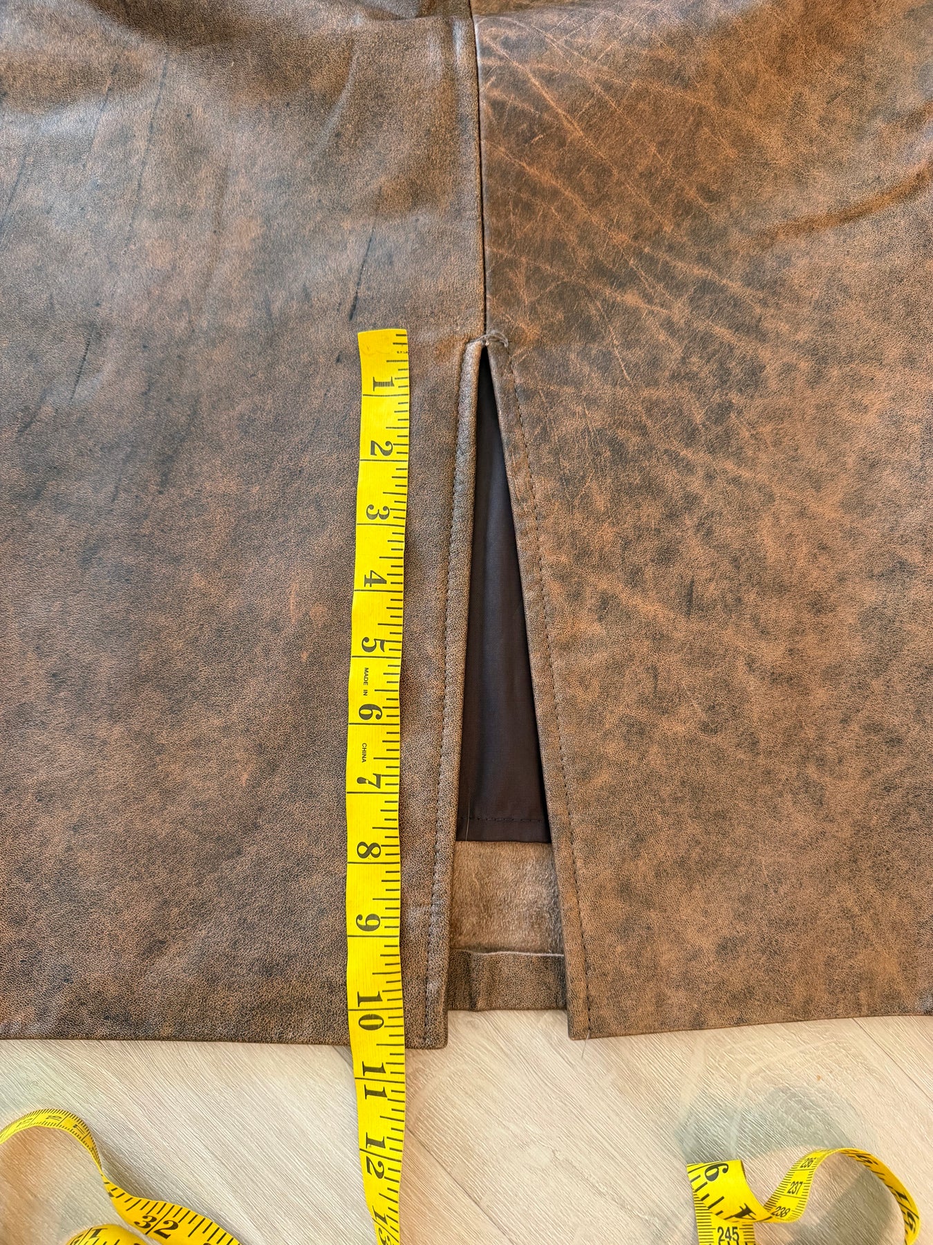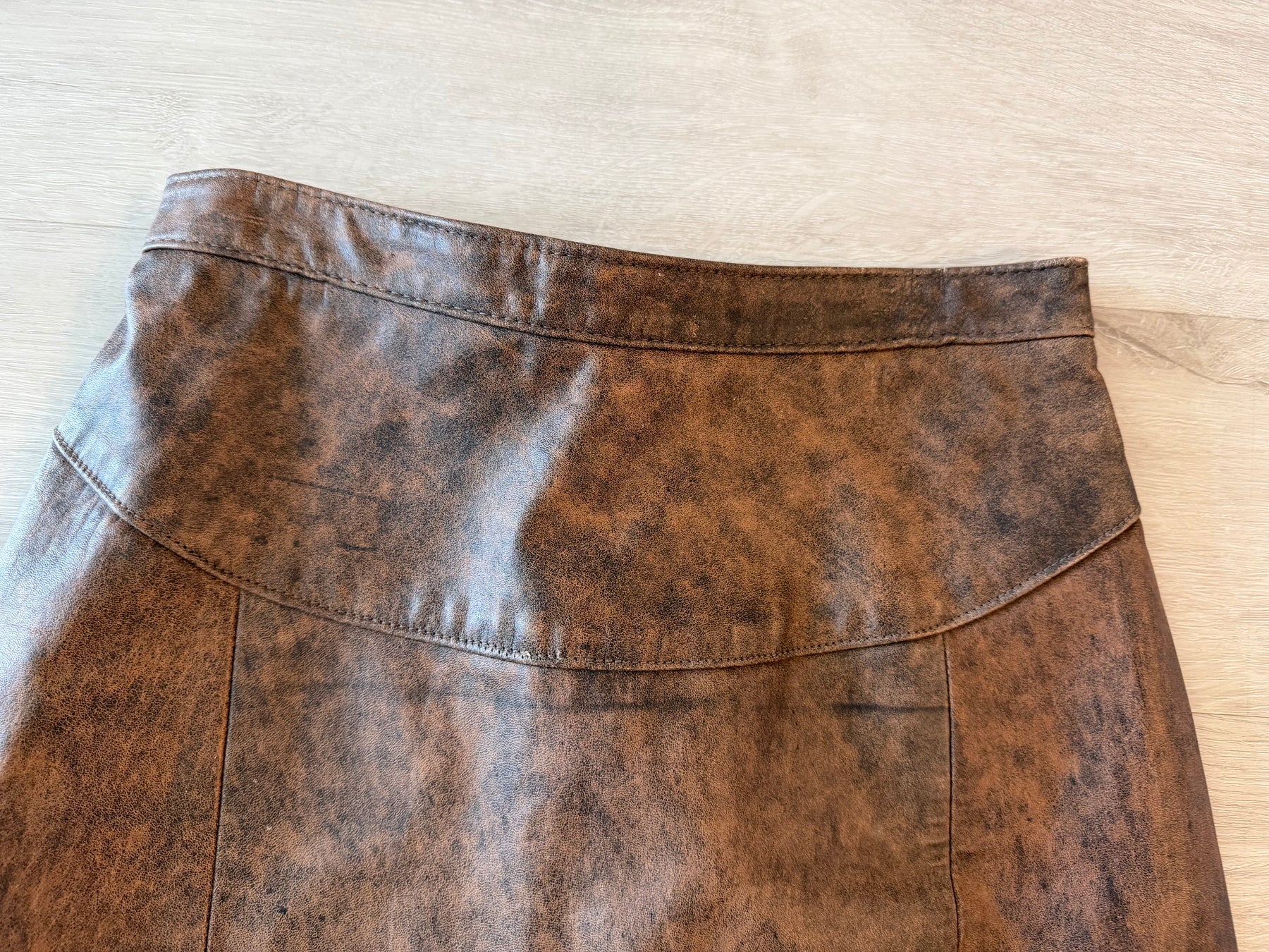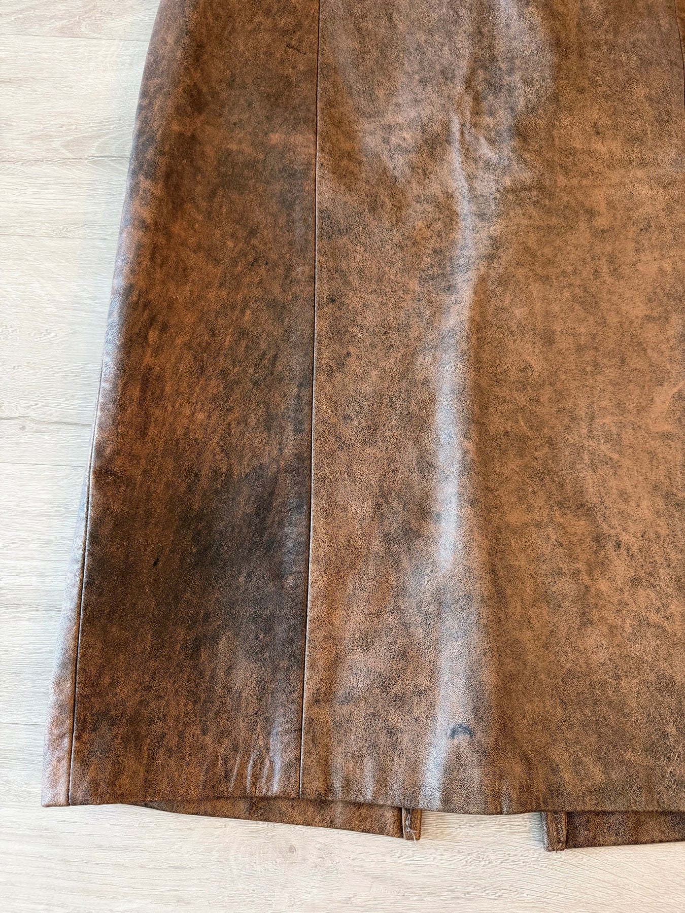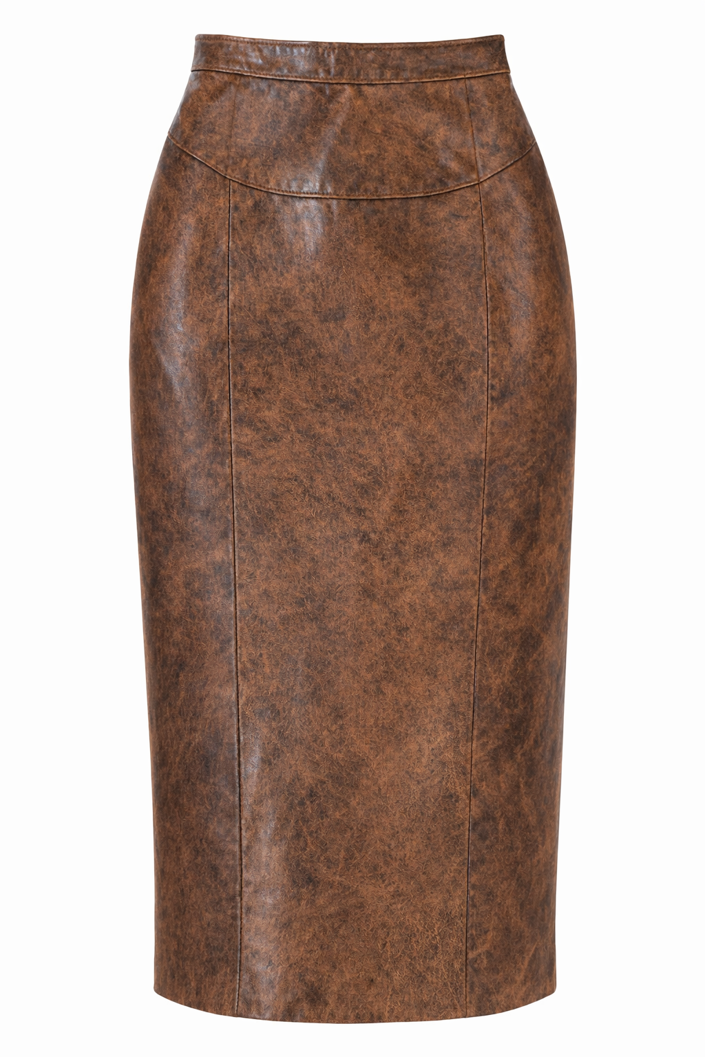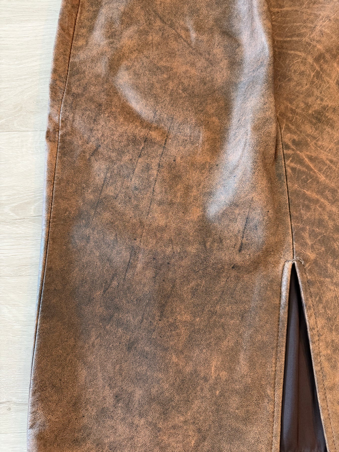 Vintage 80s Brown Leather Pencil Midi Skirt