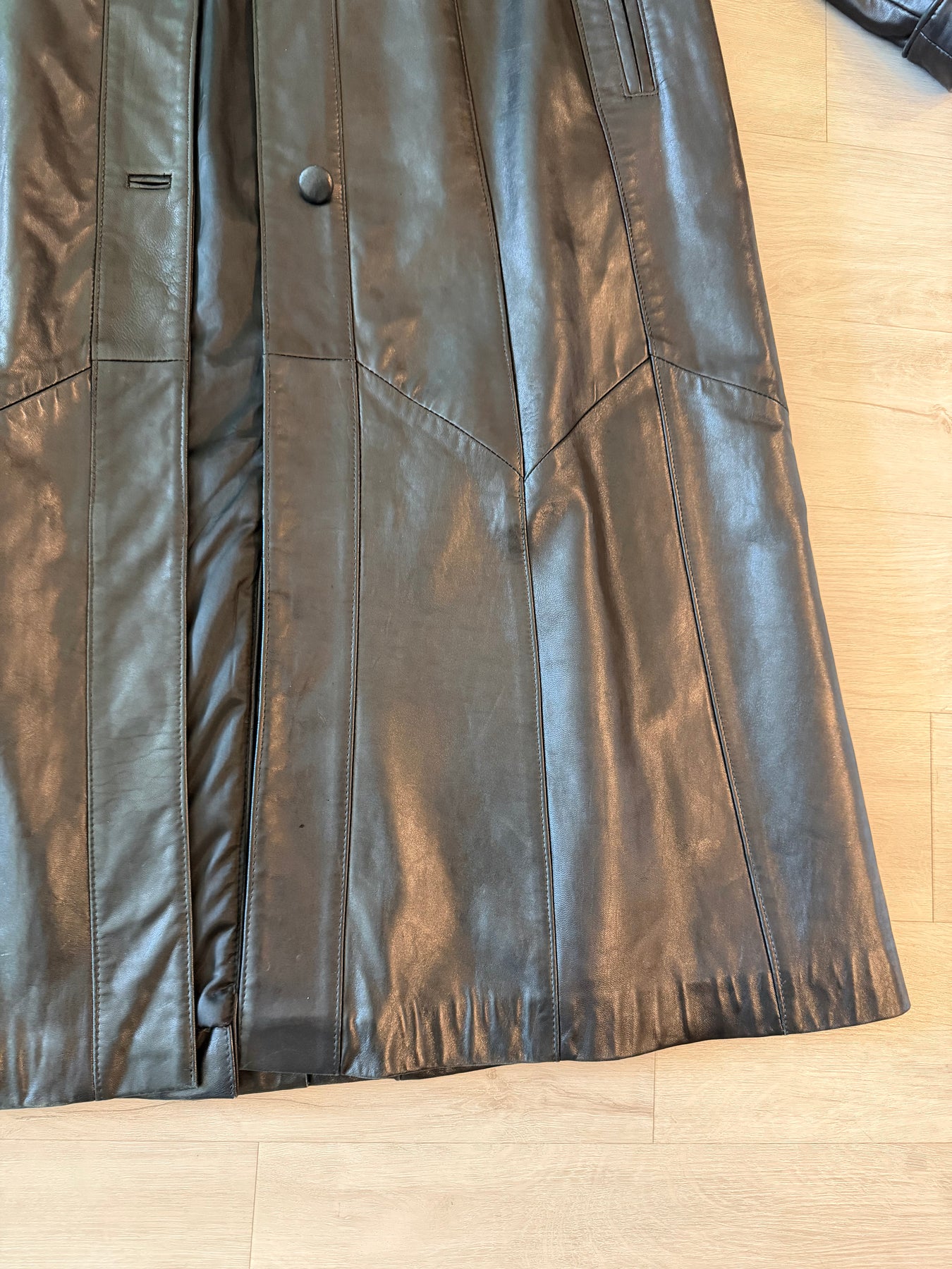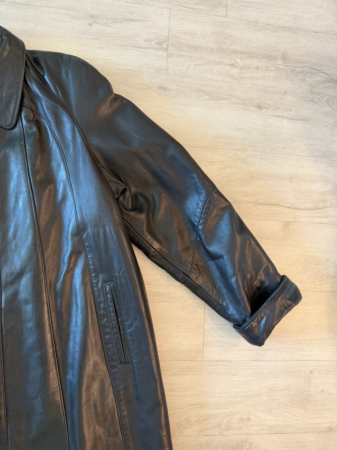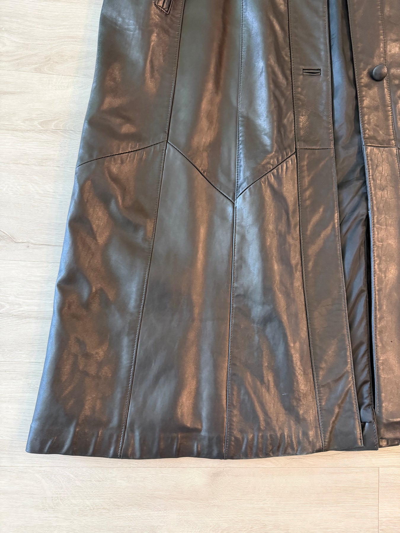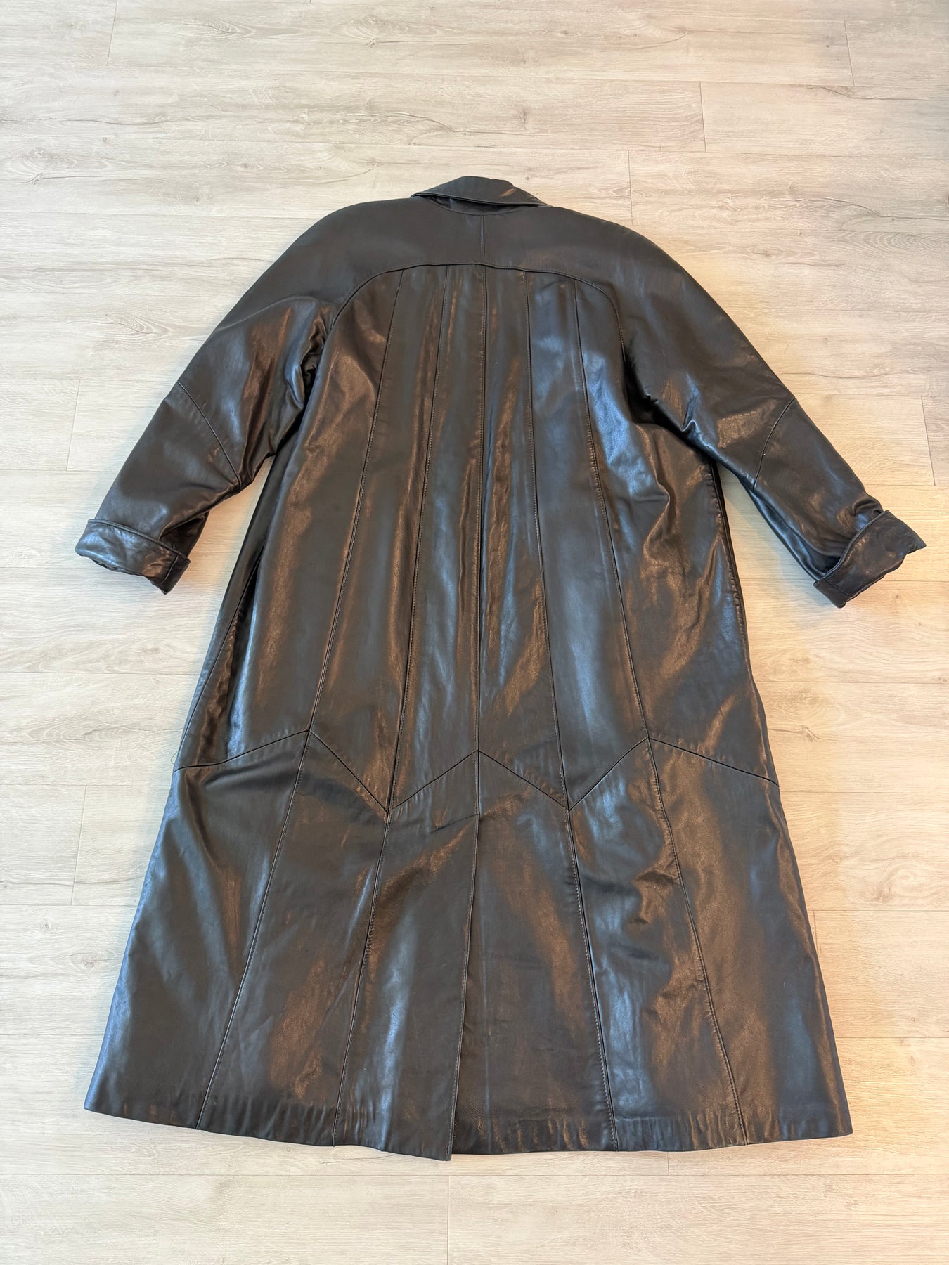 Vintage 80s Buttery Leather Long A Line Swing Coat Black Mens Unisex