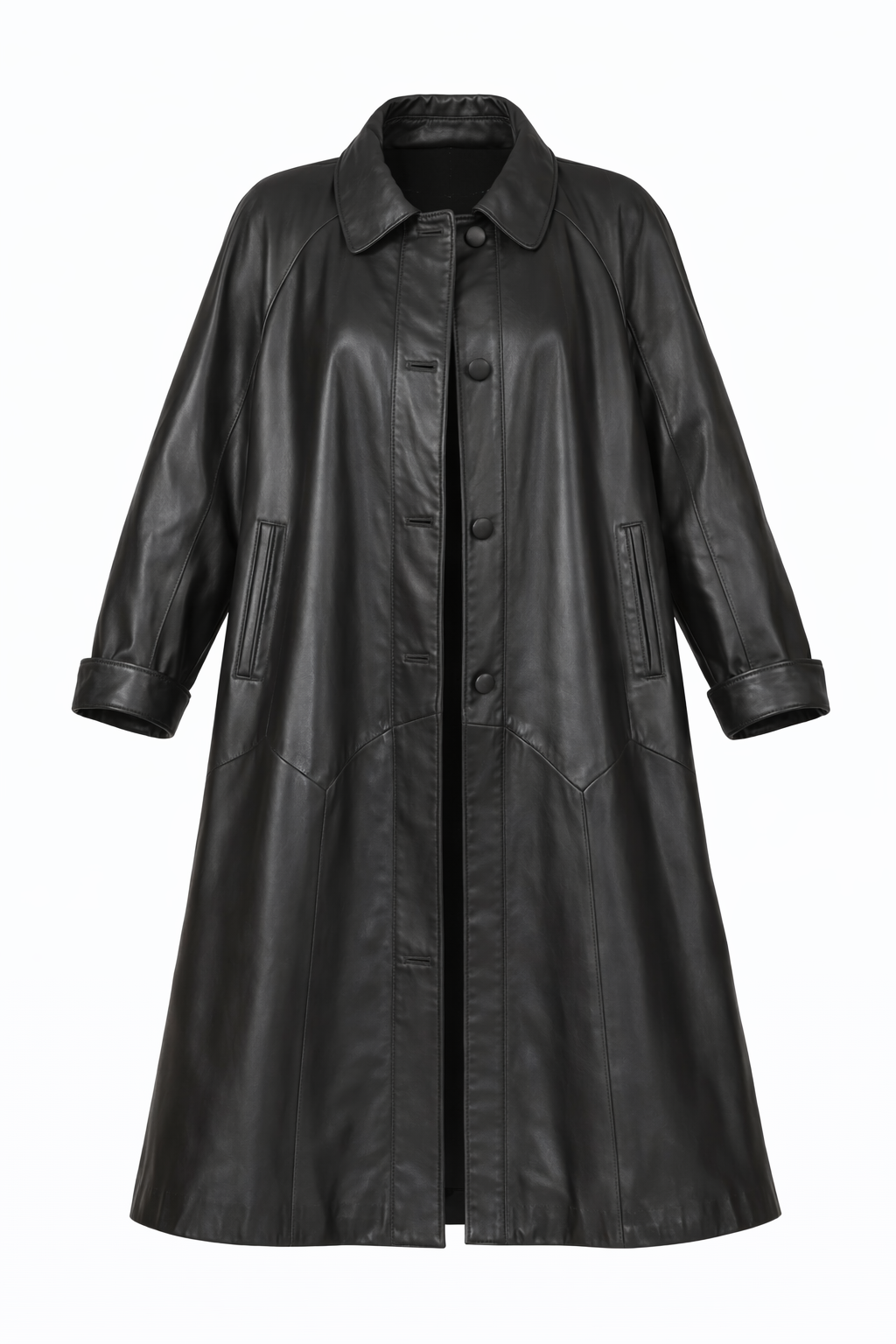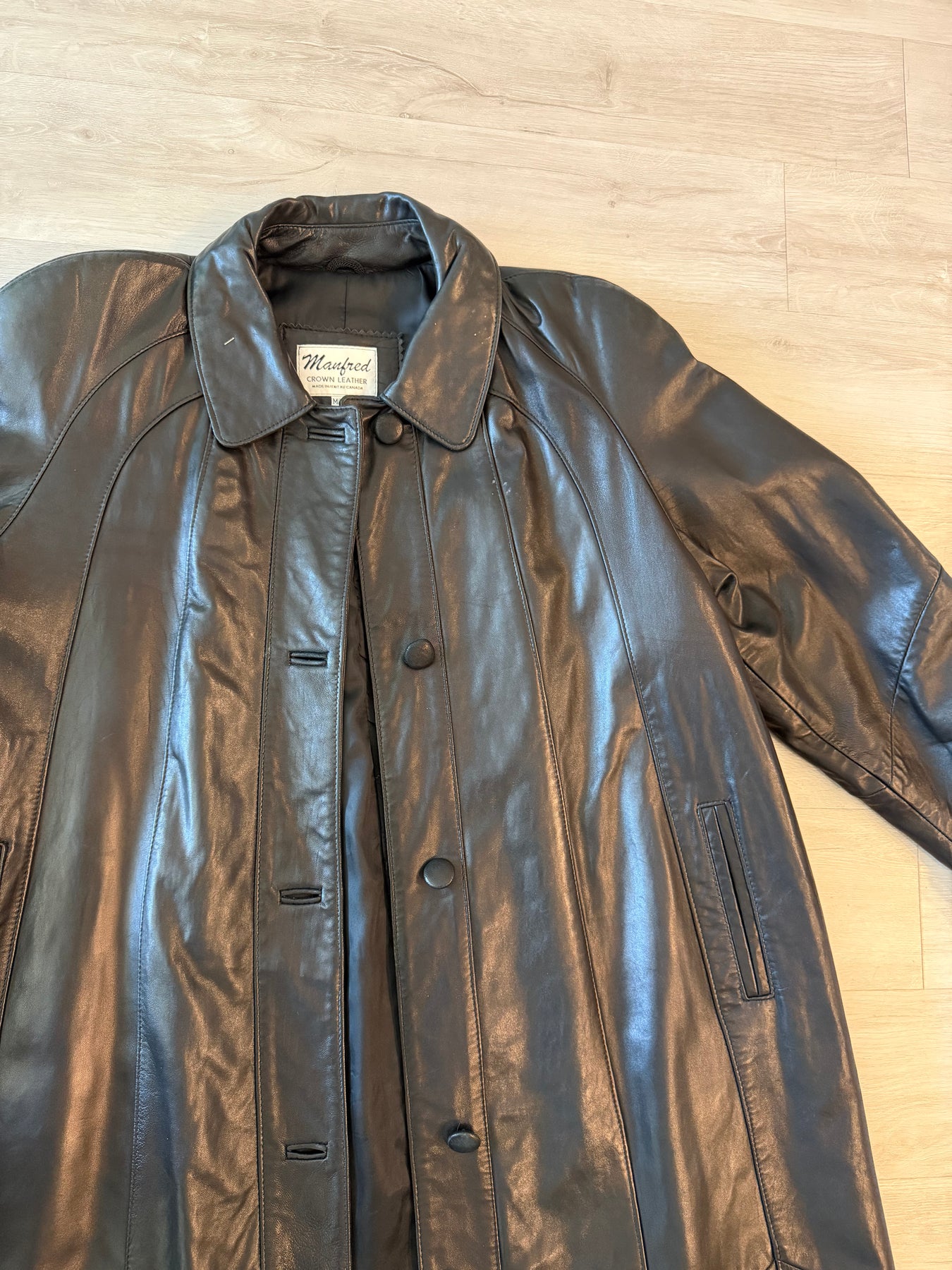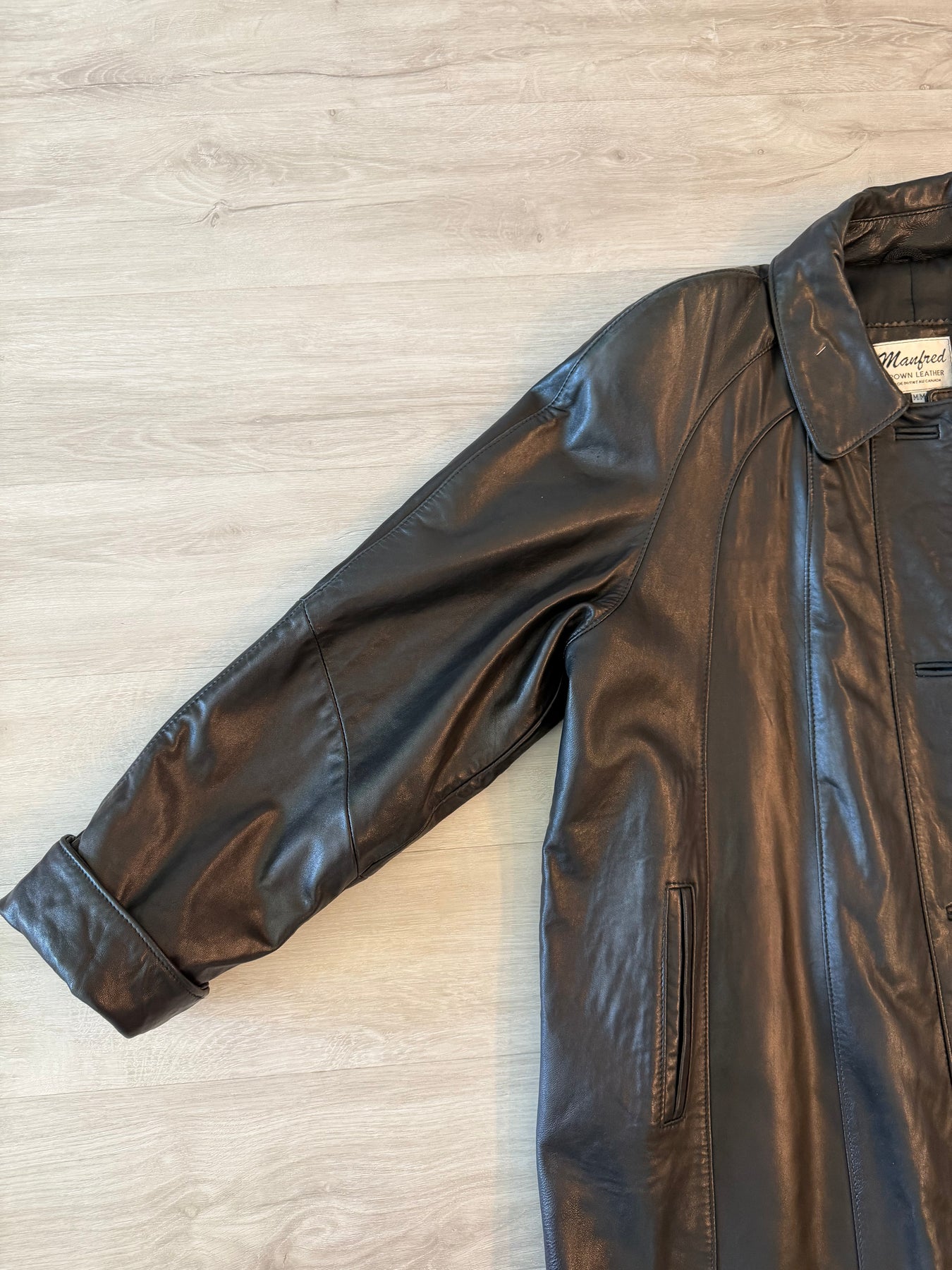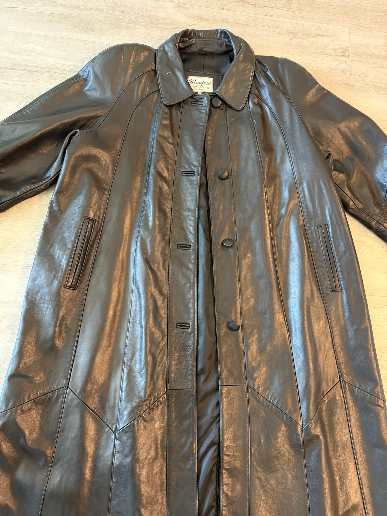 Vintage 80s Buttery Leather Long A Line Swing Coat Black Mens Unisex