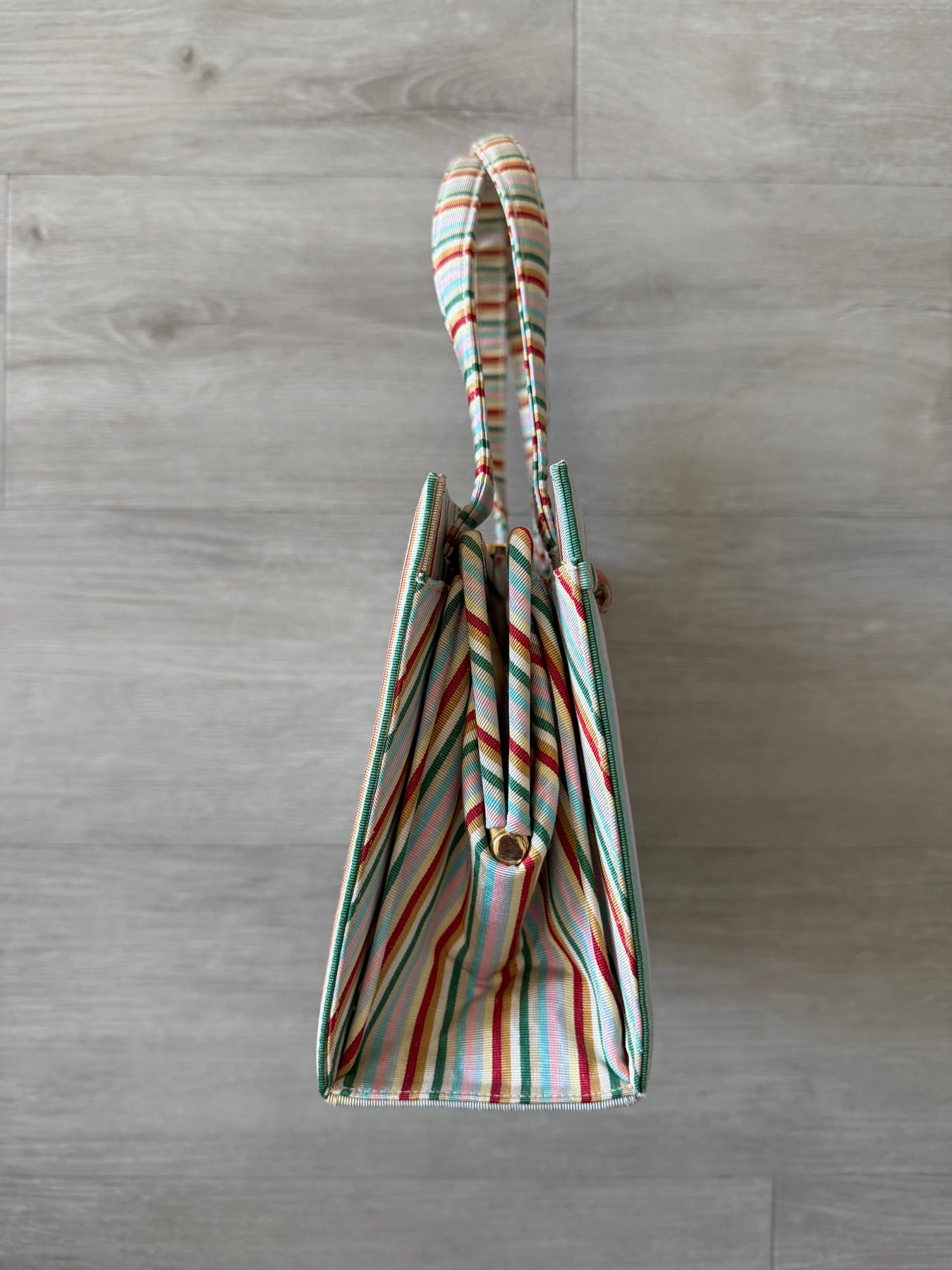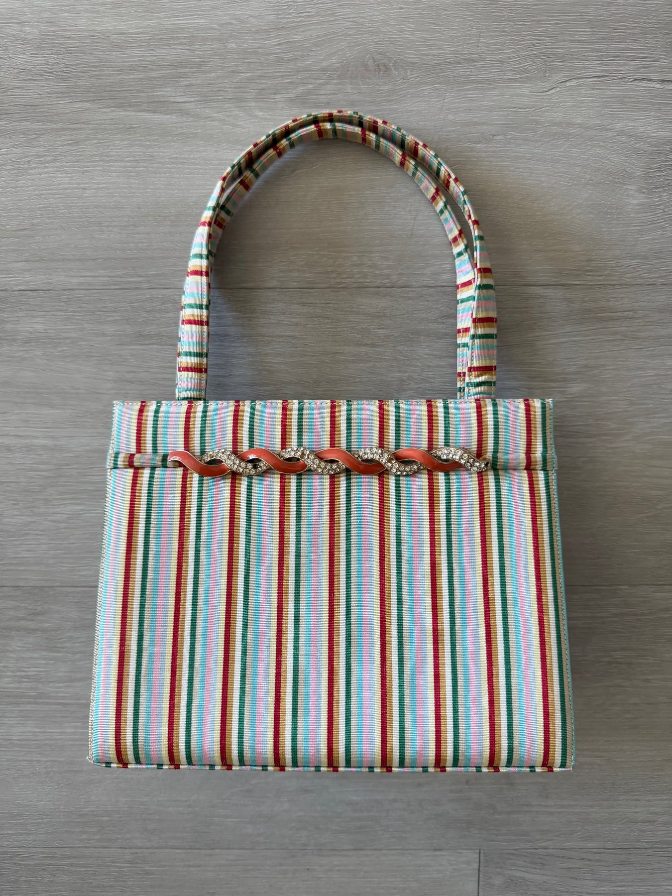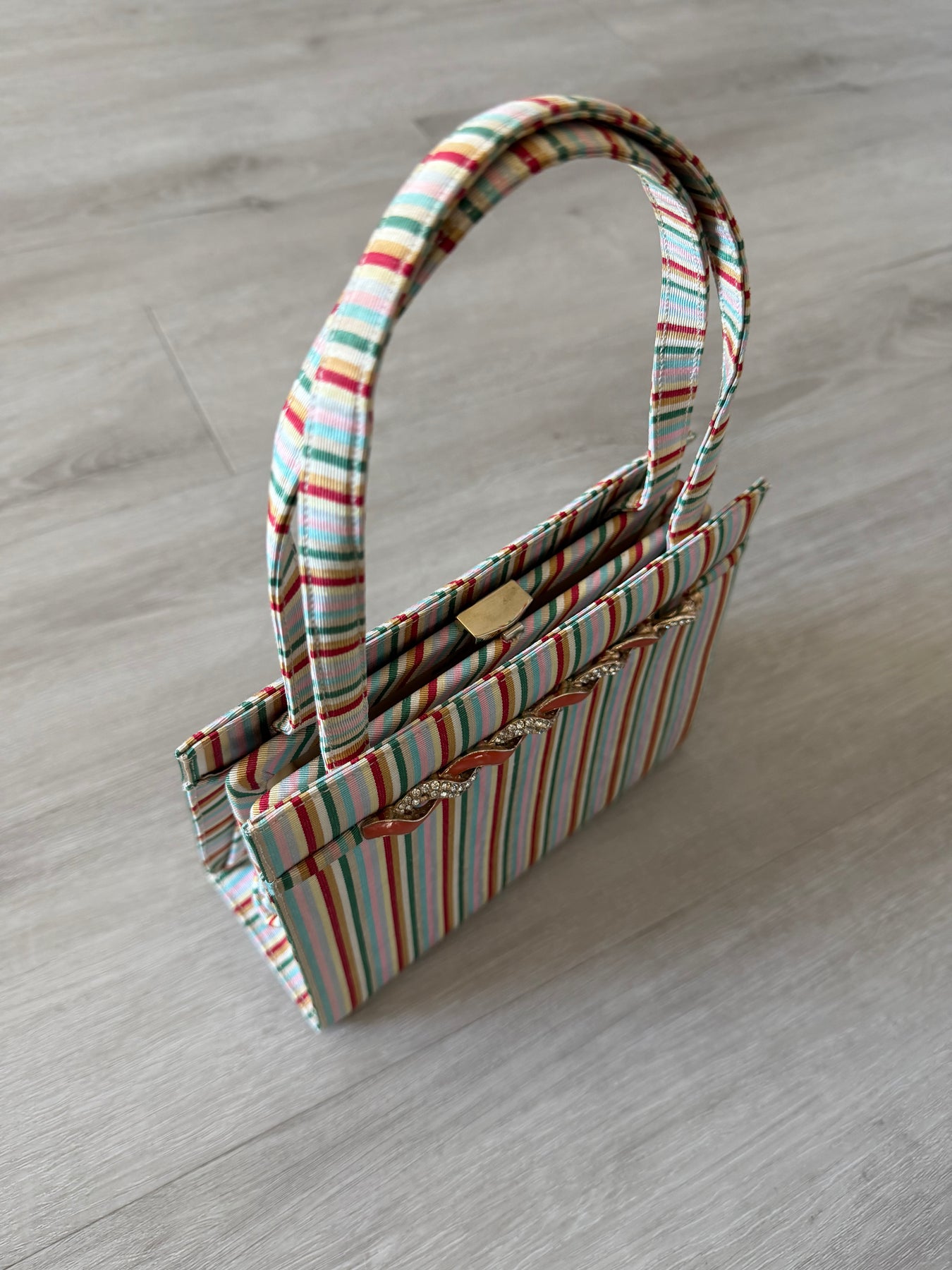 Vintage 50s - 60s Martin Van Schaak Striped Daytime Cocktail Spring Handbag w/ Rhinestones Multicolor